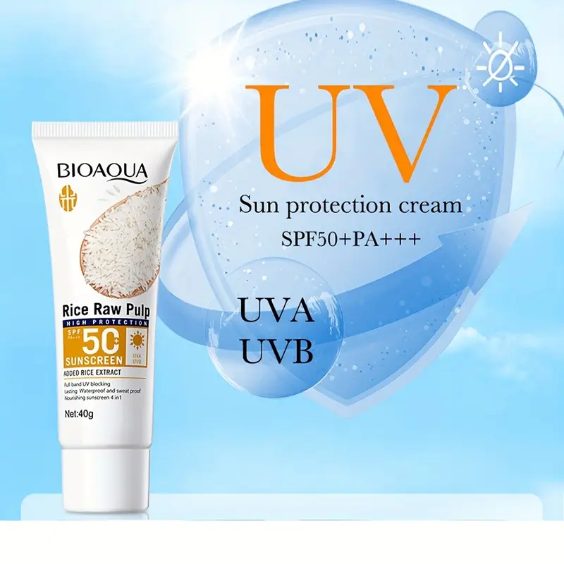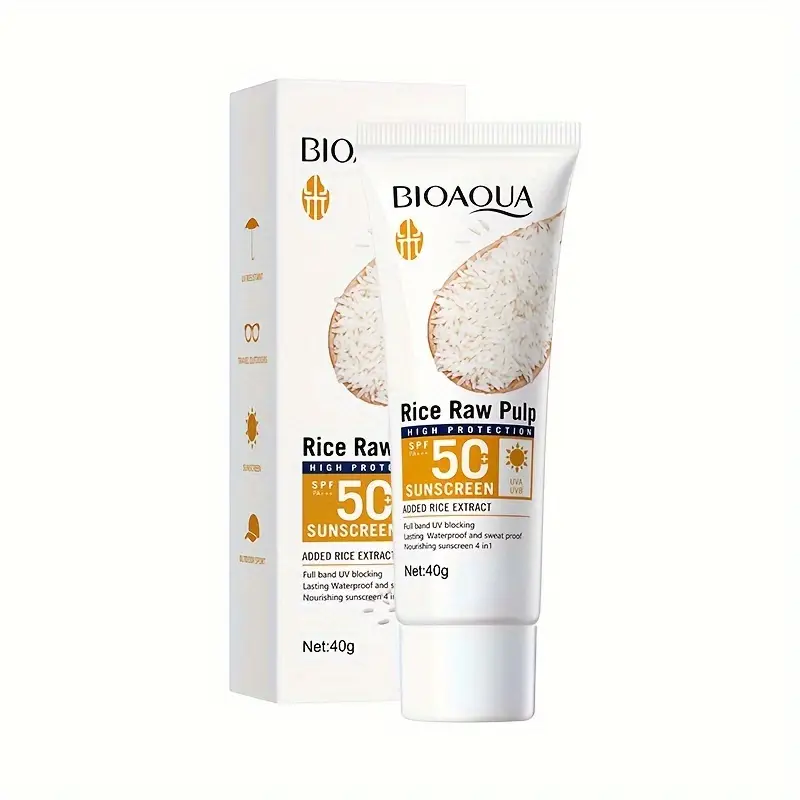 Rice Raw Pulp Sunscreen is a natural sun care product that combines the benefits of rice with advanced sun protection technology to shield your skin from UV rays while nourishing and brightening it.